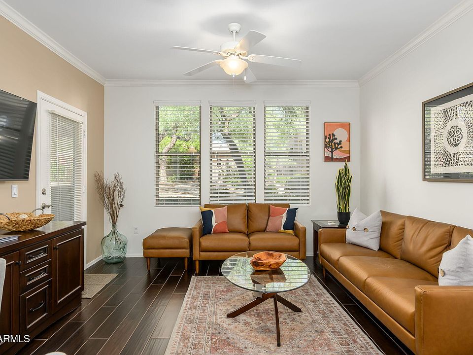 Living at The Edge at Grayhawk in North Scottsdale feels like resort-style living every day. This is a gated community where residents enjoy *4 pools, hot-tubs, a 2,500-sq-ft fitness center, social event space, movie nights, & even meals prepared by a resident chef. The gated community offers beautifully landscaped grounds, walking trails, & access to Grayhawk's golf lifestyle. This ground level condo features a split (2 primary suites) floorplan. PLUS office space. Great room w/french door to covered patio w/POOL views. Close to Thompson Peak Park w/pickleball courts & walking paths. Unit is close to the community gas BBQ. Stainless steel appliances, granite counters, & pantry. Tile floors throughout. Lots of closet storage too. Plenty of guest parking too!!