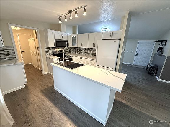 Well-maintained home sitting on 0.20 acres in Bonney Lake. Spacious kitchen with breakfast bar and stainless steel appliances. Newer remodeled kitchen, bathrooms, and flooring. Fresh interior paint. Primary bedroom with attached bathroom. 2 additional bedrooms with full bath. 2 sheds, fully fenced, garden area, amazing water feature with Koi. Located on a large low maintenance corner lot across from the playground. Great location just minutes from shopping and entertainment. Ramp is pre-built! This house is a perfect opportunity for first time AFH-Adult Family Home