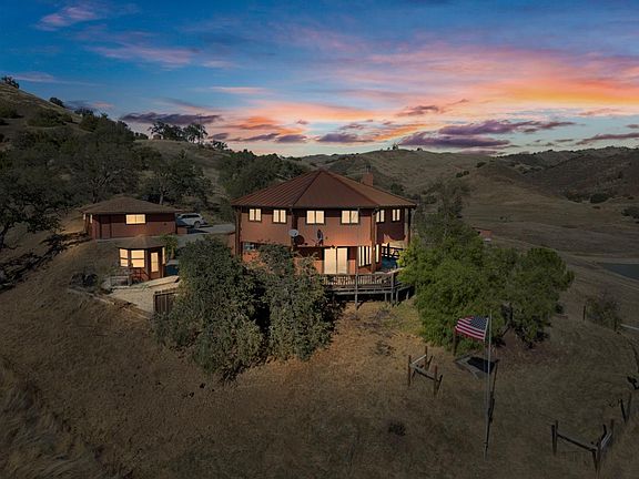 This unique, custom-built octagon home currently offers 2 bedrooms, with exciting potential to expand to 4. Soothing, panoramic views stretch from a nearly 1,800 sq ft wraparound deck, perfect for sunrise coffees. The residence features a newer metal roof and dual-pane windows for efficiency and comfort. A detached cabana with a spa provides a private retreat, while a spacious 4-car garage, half of which is set up as a workshop, adds versatility. Equestrian excellence awaits with a 1,728 sq ft barn and ample hay storage, two stalls, and a birthing stall. A separate pole barn hosts six stalls and a substantial 40x60 Quonset hut with a concrete floor offers expansive usable space. The 9,360 sq ft covered arena and a round pen complete the equestrian facility, all powered and backed by an automatic propane backup generator.. Water is secured by a private well supplying the barns and the property. A private pond adds charm and serenity, having only dried up twice in the last 30 years. With imagination, the Quonset hut could easily be converted into a living space for a destination vacation rental, ideal for horse enthusiasts seeking a country lifestyle. This property is ideally suited for horses, livestock, and anyone dreaming of a country living escape with abundant potential."