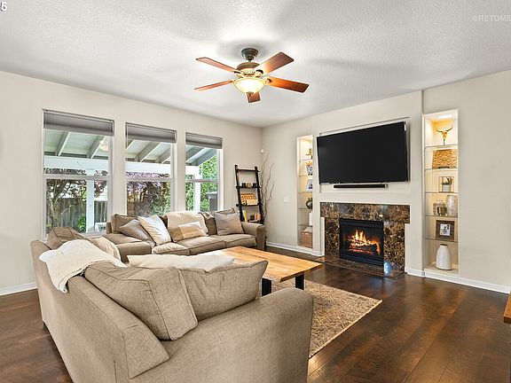 Perfectly placed on a coveted corner lot in one of Tualatin’s most sought-after neighborhoods, this home offers the rare combination of timeless traditional style, a flexible floor plan, and an all-season PNW backyard retreat. From the welcoming front porch to the thoughtful layout inside, every detail is designed for both daily comfort and effortless entertaining. Inside, find a light-filled main level with a soaring two-story entry, rich hand-scraped–look laminate floors, and a bright, open-concept living room anchored by a gas fireplace with built-ins. The spacious kitchen features granite countertops, a subway tile backsplash, generous storage, and an eat-bar that’s perfect for quick snacks or gathering with friends. Enjoy casual meals in the adjacent breakfast nook or host larger occasions in the formal dining room, complete with a convenient pass-through to the kitchen. A main-level office adds work-from-home or flex potential! Upstairs, the vaulted primary suite boasts a walk-in closet and a large bathroom with dual sinks, a soaking tub, and a walk-in shower. Two additional bedrooms share an updated hall bath, and the expansive bonus room easily serves as a fourth bedroom, guest space, or media/game room. Outside, the fully fenced backyard is a true PNW gem with a covered patio, built-in serving bar, and plenty of space for play, gardening, or relaxing year-round. A dog run keeps furry friends happy, while the rare 3-car tandem garage offers room for vehicles, gear, and hobbies. All of this comes with a location that has parks, shopping, dining, schools, and freeway access just minutes away, making it easy to enjoy everything the area has to offer. This is the perfect blend of lot, location, and lifestyle!