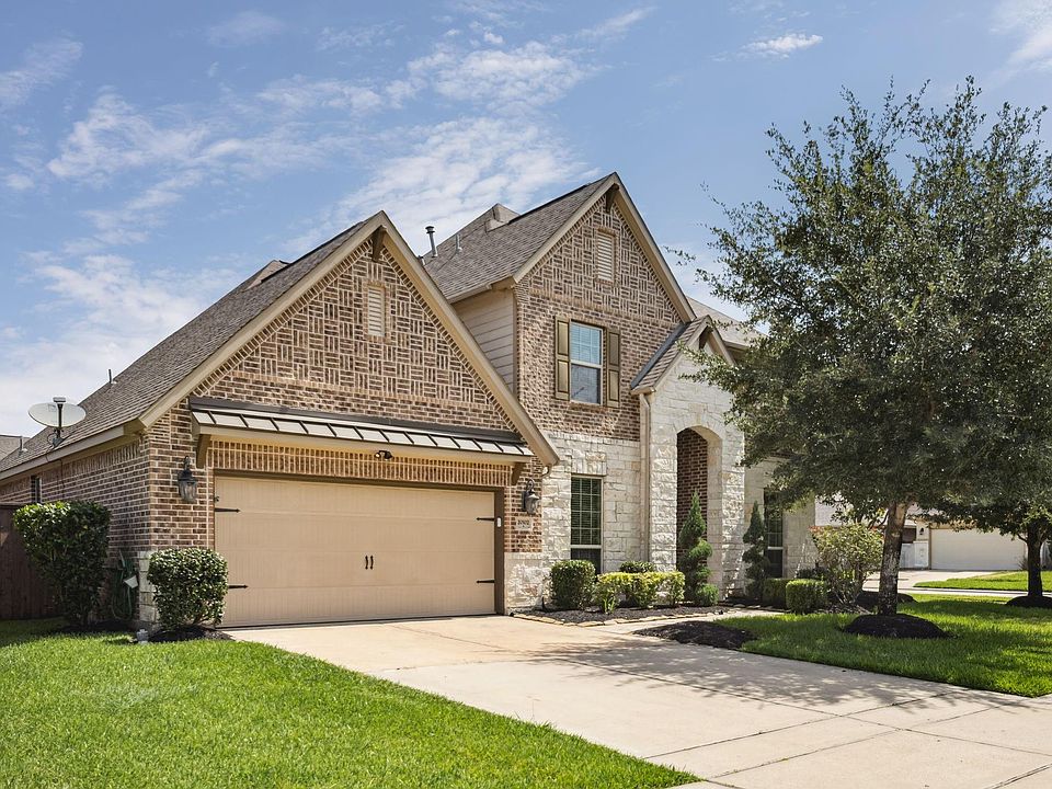 Located on a sought-after cul-de-sac, this corner lot offers an oversized backyard with plenty of room for a pool. You'll be greeted by a charming stone exterior, a grand two-story covered entryway with a speakeasy-style front door. The home has a desirable floor plan with arched doorways and crown molding. Wood floors flow throughout the main living areas, including the dining room and study. A spacious kitchen is centrally located featuring distinctive granite countertops and a large island breakfast bar overlooking the den. The primary suite offers a relaxing bay window, spa-like ensuite bath with a jacuzzi style soaking tub and walk-in shower. Covered and extended back patio. Rachio smart sprinkler system. Tankless water heater. Gas stub for outdoor grilling. Gas log fireplace. Recessed lighting & ceiling fans. Home office with French doors can easily serve as a fifth bedroom. Falls at Dry Creek offers walking trails, recreation and fitness center, party room and splash pad.