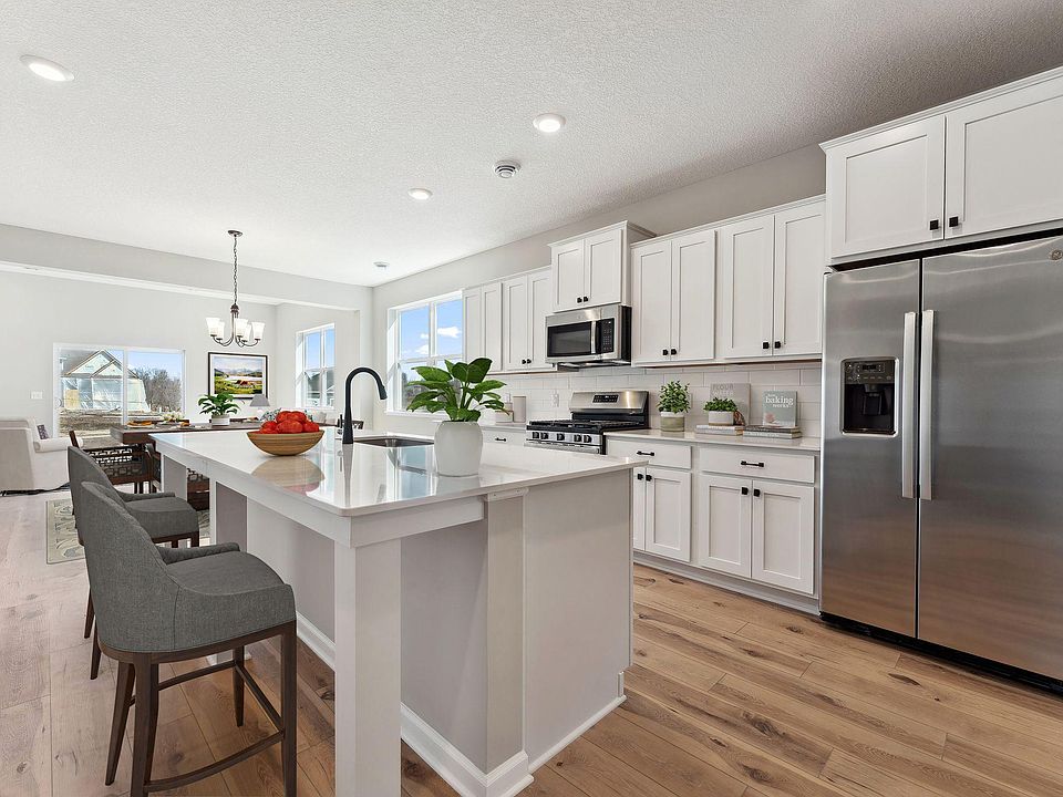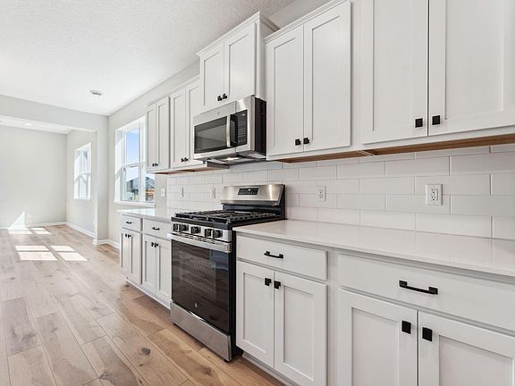 Welcome to the Superior end-unit townhome offering on trend finishes with over 2,100 finished square feet! As you enter, you are greeted by 9’ceilings and an abundance of natural light. The galley-style kitchen offers loads of cabinetry, stainless appliances, timeless subway tile backsplash, and a large island with additional prep space & seating. Across from the kitchen, is the flex room with French doors, perfect for a home office, or craft area. At the back of the home, wing wall details help define the family room and dining room while preserving the open flow between living spaces. The spacious family room is anchored by a sleek electric fireplace for warmth and ambiance. Tucked behind the family room is the owner’s suite that can accommodate many furniture arrangements. The large walk-in closet is sure to keep you organized. A true oasis, the en-suite bath includes a large shower, double-bowl vanity, and a linen closet. The laundry room with washer and dryer completes the main level. Make your way upstairs to the secondary bedrooms, additional bathroom, and a large storage area. Rush Creek Reserve is conveniently located just 13 min from the Shoppes at Arbor Lakes and is close by Corcoran Community Park and Rush Creek Golf Club. Stop out to the community to learn more about your new home opportunities!