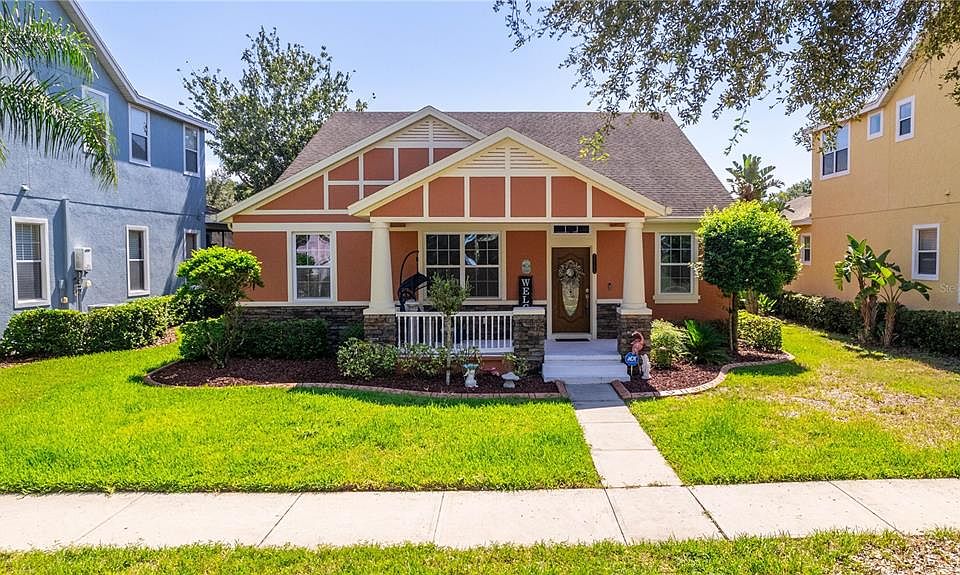 Welcome to this 3 bedroom 2 bath 2 car garage home built in 2013 in the desirable community of Grand Hampton. This is a traditional build with inviting front porch and rear entry garage. Entering the home, there is a welcoming foyer with arched walkways and you will notice the 9'6" ceilings, 8 foot doors, 5 inch baseboards and 18" tiles throughout amongst the many architectural details of the home. The home comes with newer Solar panels and is Green Built and Energy star certified! Beyond the foyer is a formal dining area with tray ceilings and great natural light. The kitchen is spacious and open with center island, 42" maple cabinets with crown, granite countertops and stainless steel appliances and a walk in pantry. The floorplan allows for an informal eat in area and then opens to a large family room. There are sliders to the private screened back lanai to enjoy sitting out. You'll love the master suite! It features tray ceilings with crown molding and a new upgraded master bath. The main bath has been updated and remodeled with a frameless walk-in shower, new light fixtures, designer tile accents and an oversized walk-in closet. The 2nd and 3rd bedrooms are on the opposite side of the house giving you a great split bedroom plan and share the 2nd bathroom. Other exceptional upgrades include insulated garage door with new garage door opener, built-in shelving in the garage and a new water heater. Grand Hampton is a 24-hour manned gated community with resort style amenities that include a newly remodeled community center, work out facilities, multiple pools and an inviting sense of community. Just minutes to USF, Moffitt Cancer Center, Florida Hospital, Wharton High School, Turner Middle School, Bartels Elementary School