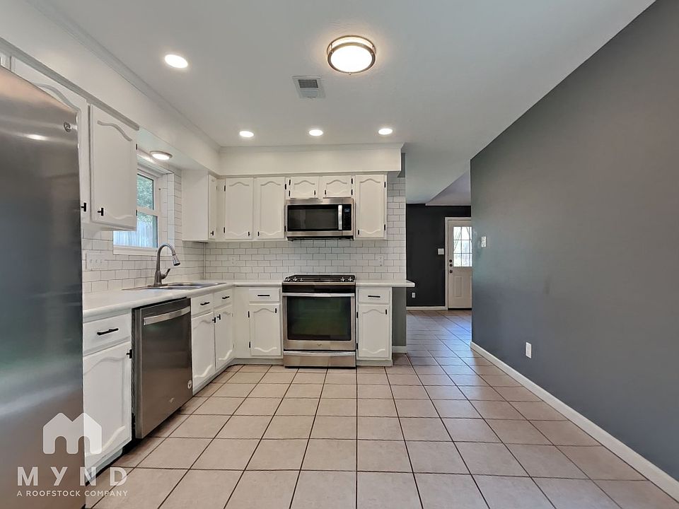Welcome to this charming single-story 3-bedroom, 2-bathroom home offering 1,534 sq ft in the peaceful Atascocita North community. The inviting open layout features a cozy fireplace, bright tile flooring, and plenty of natural light. The all-white kitchen is both stylish and functional, equipped with a full suite of stainless steel appliances, a pantry, and sleek cabinetry. The spacious primary suite includes an en-suite bath with dual sinks and a tub-shower combo.
