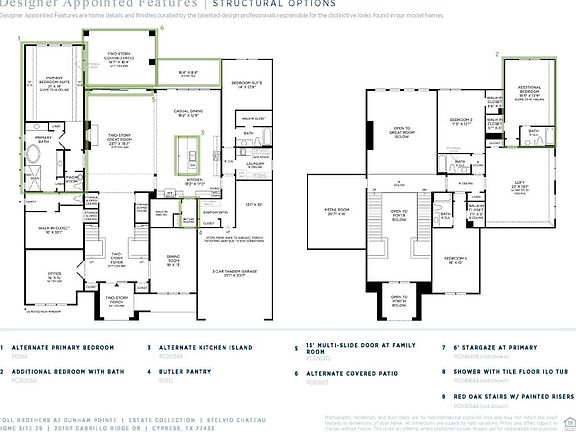 Impressive is what you will think when you experience the Stelvio Chateau plan. The stucco finish, enhanced with wood shutters, and a two-story covered front entry boast curb appeal. An opulent two-story foyer is graced with two stunning staircases and an open hall leading to the main living areas. A spacious home office is decorated with French doors and front yard views. The formal dining room features a lovely window display and a convenient butler's pantry that leads into the kitchen. Soaring ceilings in the great room are warmed by a contemporary electric fireplace. The chef-inspired kitchen features an expanded island, premium fixtures and appliances, a casual dining area, and a generous walk-in pantry. Overnight visitors or multigenerational living can be achieved with the spacious bedroom suite with a full bath and walk-in closet just off the kitchen. A luxurious primary bedroom suite includes a gorgeous bath with dual vanities, a freestanding soaking tub, a large walk-in shower, a linen closet, and a huge walk-in closet with an added vanity area. Additionally, the second floor is host to an entertainers dream space with a large loft and huge media room. Three sizable secondary bedrooms, complete with full baths and walk-in closets, create space and privacy for everyone. Added highlights include a spacious laundry room, added storage space, and a 3-car tandem garage. Disclaimer: Photos are images only and should not be relied upon to confirm applicable features.