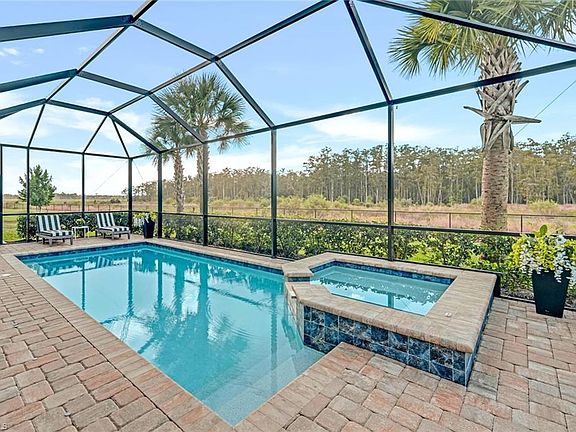 THE MOST EQUISITE MYSTIQUE HOME IN VERDANA VILLAGE! Owned and designed by a professional stager as her personal residence, this home is a rare blend of functionality and elegance, placing it among the top tier of properties you’ll find in this market. This LUXURY POOL & SPA home offers designer upgrades throughout and PRIVATE PRESERVE VIEWS for ultimate tranquility. Featuring 3 BEDROOMS, an ENCLOSED DEN, 2 FULL BATHROOMS, and nearly 2,100 FINISHED SQ FT of beautifully finished living space, this Pulte Mystique is perfectly positioned on a PREMIUM WESTERN EXPOSURE PRESERVE LOT with a CUSTOM SALTWATER POOL & SPA and an EXTENDED OUTDOOR LIVING AREA, ideal for entertaining. Don't miss out on this one of a kind home! Every inch of this home has been thoughtfully designed and meticulously maintained. Enjoy a COVERED EXTENDED LANAI, ZERO-CORNER SLIDING GLASS DOORS, and a FULL OUTDOOR KITCHEN, creating seamless indoor-outdoor living. Inside, the open-concept layout shines with 8-FOOT DOORS, 5¼” BASEBOARDS, TRAY CEILING in the Gathering Room, CUSTOM LIGHTING and POLISHED LUXURY TILE THROUGHOUT — no carpet anywhere. The gorgeous KITCHEN showcases a rare built-in layout no longer offered by Pulte, complete with a KITCHENAID gas cooktop and wall oven, upgraded refrigerator, LEATHERED QUARTZ COUNTERTOPS, upgraded cabinetry, under-cabinet lighting and a custom pantry. The laundry room features CUSTOM CABINETRY and a utility sink, while a separate utility room provides additional storage with CUSTOM CABINETRY. The EXTENDED 4-FOOT GARAGE includes a painted floor, overhead storage racks and room for a golf cart or hobby area. The PRIMARY SUITE offers peaceful preserve views, a SPA-LIKE BATH with LEATHERED QUARTZ COUNTERTOPS, dual vanities, walk-in shower, and a CUSTOM-DESIGNED CLOSET. Two additional guest bedrooms include one with a BAY WINDOW large enough for a king-sized bed, and the ENCLOSED DEN offers versatility for remote work, hobbies, or guests. Additional upgrades include a WHOLE-HOME SOLAR POWERED WATER FILTRATION SYSTEM, 7 EXTERIOR SECURITY CAMERAS, and hurricane panel shutters for peace of mind. Located in Estero’s highly sought-after VERDANA VILLAGE, a NATURAL GAS community known for its resort-style amenities: an INDOOR SPORTS COMPLEX (with 4 indoor pickleball courts, 2 tennis courts and a full basketball gym), 12 OUTDOOR PICKLEBALL COURTS, a state of the art fitness center with yoga & strength training, and THREE ONSITE DINING OPTIONS including a Café, Drift Restaurant, and Craft Lounge. Just outside the gates, you'll find the Shops at Verdana Village including a Publix grocery store, Dunkin Donuts, Italian restaurant, nail salon, UPS store, and a bank—all just a short golf cart ride away! Experience this better than new home with top-tier finishes, unmatched privacy, and resort-level amenities!