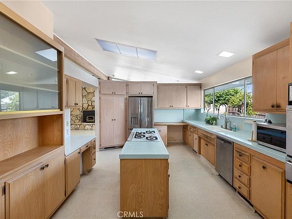 Nestled on the cusp of Torrance this mid century modern time capsule is ready for its next owner to get creative and/or maintain its current integrity. Revitalized in the 60’s by engineer/contractor Forrest G. Bell w/ inspiration from architects Cliff May & Eichler this bungalow has been well preserved within the same family for decades. A plethora of natural light fulfill the living room/dining room, vaulted ceilings, multiple skylights, Rancho Palos Verdes stonework surround the fireplace. Custom birch cabinetry & original mid century tile grace the kitchen, stainless steel refrigerator/ dishwasher. The primary suite and bedrooms all have the original doors & custom closet doors in birch. In the bathrooms all original mid century tile work, custom birch cabinetry, alongside sinks & bathtub in tact by American Standard. An open canvas in the backyard’s expansive lot include trees of orange, lemon, avocado, tangerine & a tranquil environment. The basement provides an excellent use of extra storage and keeps the access to central heat & water heater tucked away. The industrial style expansive garage provides a magnificent opportunity for an ADU with over 800 sqft and loft storage already in place. A stones throw away to Narbonne Ave’s thriving strip, Crema Pan Bakery, Corridor Flow Coffee, Burning Daylight Brewing Company, Fantastic Cafe, Bonello’s New York Pizza, Lomita Alehouse are just a few of many to mention. Close to all major freeways and approx 5 miles to the beach. A true MCM Gem in the South Bay!
