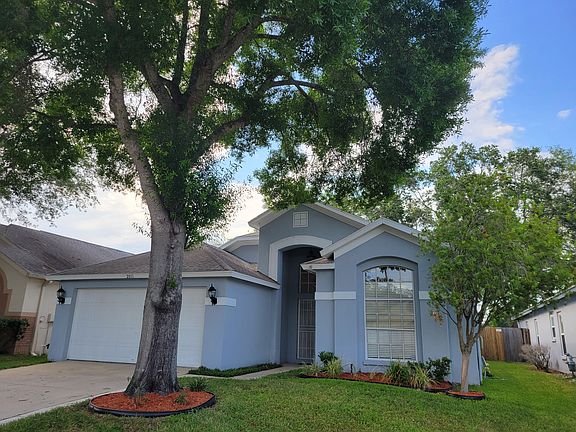 WATERFRONT, 3 bedroom, 2 bathroom home with both comfort and convenience. Large open Great room floorplan with spectacular pond views. Wood like flooring and ceramic tile throughout. Vaulted ceilings in every room make it open and airy. New interior paint. Large modern Eat-in Kitchen with Granite, Stainless Steel Appliances, Gas Stove, Wine Refrigerator and Oak Wood cabinets with glass front accents and cabinet lighting. Master suite with custom closet design. Secondary bedrooms have built in closets. Equipped with Nest capability. Enjoy your peaceful oasis on the 25 X 12 screened lanai overlooking the the picket fenced, landscaped yard and tranquil pond. Lawncare and Pest control included. Sought after Sterling Ranch community offers: Community Pool, clubhouse and playground. The neighborhood's location is ideal for your commute to downtown Tampa or MacDill AFB. It also offers quick and easy access to SR60, I-75, the Crosstown Expressway close to the Crosstown Expressway, I75, Brandon Shopping Mall and Restaurants.