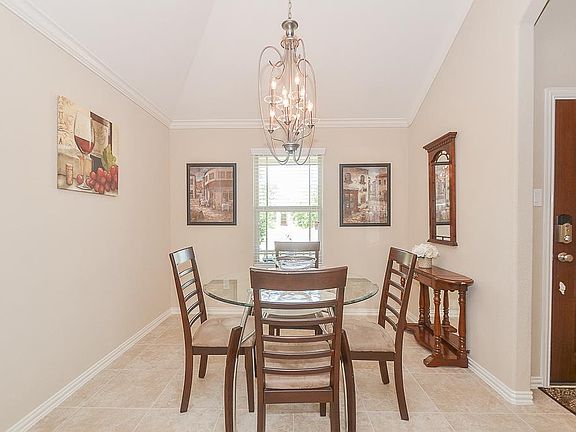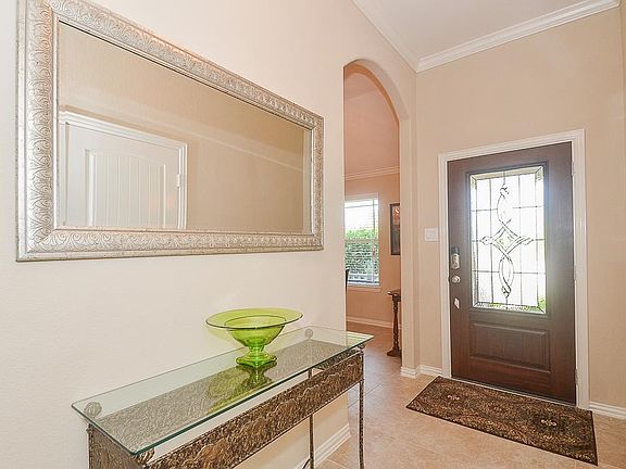 Gorgeous 1-story, like new w/high ceilings, tile floors, crown molding, stainless appliances, granite counters, extra storage, great yard & a covered patio. Relax in the garden tub w/separate shower. Start your day without crowding in the large master w/sitting area, double sinks & walk-in closets in every room. Entertain in the open concept floor plan w/a breakfast bar open to the den. Save money w/energy efficient features throughout & all appliances included (washer/dryer/refrigerator).