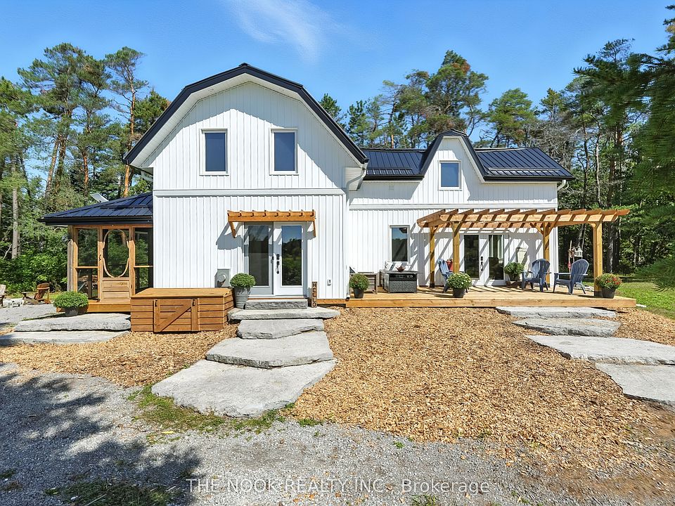 Country charm meets modern luxury at 2011 County Road 121 in the heart of the Kawarthas. Set on 20.5 acres with a mix of forest and open pasture, this fully reimagined century home blends rural living with every modern convenience. Extensively renovated inside and out in 2024/2025, the home showcases red pine wood floors, shiplap ceilings, custom built-ins, a new kitchen with quartz counters, farmhouse sink, and walk-in pantry, plus spa-like bathrooms and a screened-in porch. Nearly everything is new windows, doors, plumbing, electrical, insulation, siding, roof, heat pump, drilled well, and water system offering peace of mind for years to come. The layout is bright and spacious, with a main floor bedroom or office, upper-level laundry, and seamless indoor-outdoor flow to a large deck and pergola.The property includes a new bunkie, a classic bank barn in excellent shape, and room for hobby farming, recreation, or future dreams. Just 10 minutes to Fenelon Falls and 30 minutes to Lindsay, with the Burnt River right behind for boating, swimming, and connecting to the Trent Severn. Starlink internet makes working from home effortless, while nearby ATV and OFSC snowmobile trails ensure year-round adventure. A rare opportunity to enjoy the Kawarthas in a move-in ready, modernized homestead with timeless character.