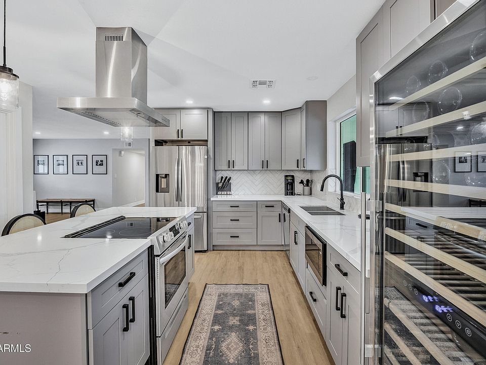 Welcome to this beautifully renovated 4-bedroom, 2-bathroom home located in a well-established and well-kept Mesa sub division. Situated on a generous 11,239 sq ft corner lot, this large 2,392 sq ft single-story home offers the perfect combination of space, comfort, and modern design, all with NO HOA! Inside, you'll find a bright and open floor plan featuring a fully renovated interior, energy-efficient windows, a newer HVAC system, and other high-quality finishes throughout every room. The pride of ownership is evident in every detail. Step outside to your private backyard oasis complete with a sparkling pool, spacious covered patio, RV gate, and a putting green, perfect for relaxing or entertaining.