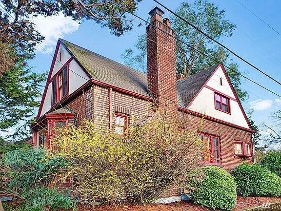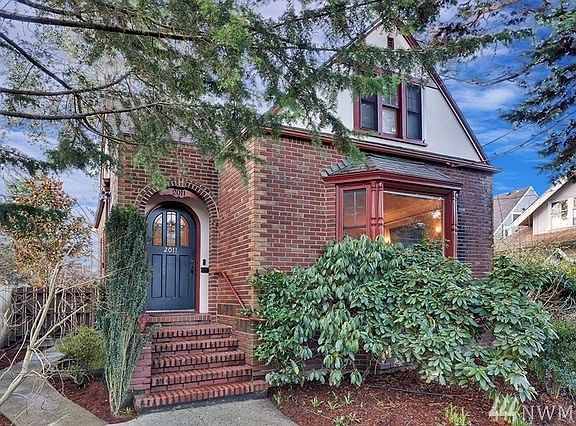 Charming updated brick Tudor. Stained & leaded glass windows, period moldings, coved ceilings, glass doorknobs, and oak/mahogany inlay hardwoods complete this Cap Hill gem. Newer powder rm & bdrm on main. 2 bdrms up w/spacious light-filled master elegant bath w/original tile. Basement w/extra bdrm/office & rec/media room. A/C, security system & modern technology. Sought after 2-car garage w/storage. Mature landscaping, stone patio & fenced backyard. Walk to cafes, restaurants & Volunteer Park.