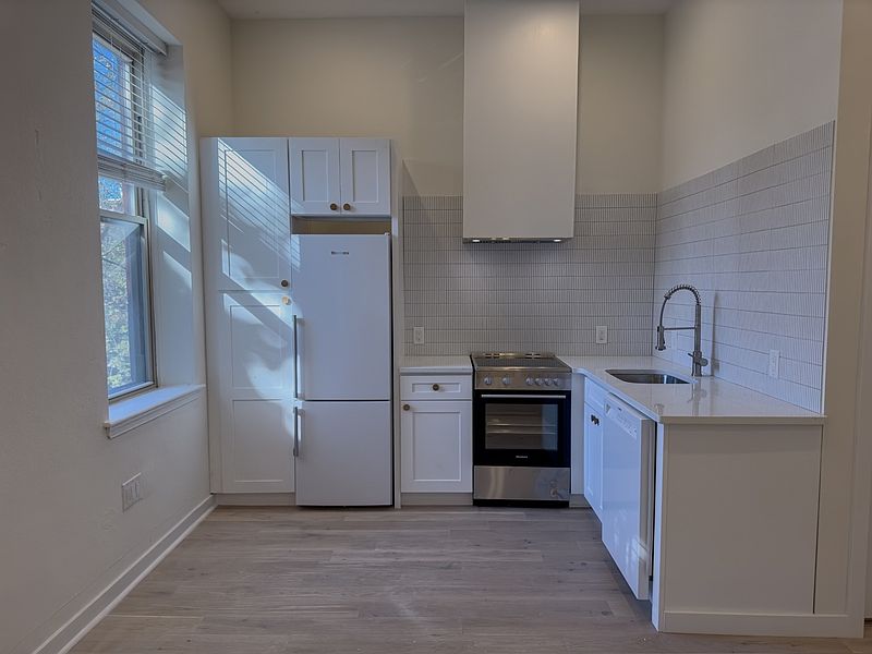 - Full chef's kitchen, white hardwood shaker cabinetry, quartz counters, all-new, high-end appliances