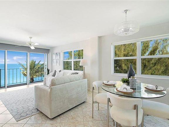 Experience the ultimate beachfront lifestyle in Naples! Welcome to Carriage Club, where luxury meets the serene beauty of the Gulf of Mexico. This stunning two-bedroom, two-bath end-unit is a rare gem, offering unparalleled views and exquisite living spaces. Nestled directly on the sandy white beaches, next to Moorings Beach Private Park, this condominium is your perfect weekend or seasonal retreat. Breathtaking views abound – enjoy sunsets and panoramic water views from the west, twinkling city lights to the north, and glimpses of the bay to the east. The expansive windows flood the unit with natural light, creating a bright and inviting atmosphere. Move-in ready, this condominium is ready for you to enjoy, featuring impact windows, remodeled baths, and new carpet. The living area boasts a slider with an electric storm shutter and a remote-controlled electric shade for your convenience. With impeccable amenities, Carriage Club offers a heated pool, assigned carport parking, extra storage, a community room overlooking the beach, and a newly renovated laundry room. The property is meticulously maintained with tropical landscaping and renovated amenities that enhance its allure. Located south of Doctor’s Pass, you are in a prime location just minutes away from The Village Shops on Venetian Bay, Old Naples, and the world-renowned shopping and dining on Fifth Avenue. Carriage Club is secure and well-managed, ensuring peace of mind for all its residents with an experienced on-site property manager and a secure lobby. Don't miss the opportunity to own a piece of paradise in Naples.