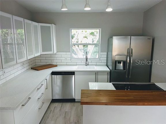 Don't miss this beautifully remodeled home! NEW ROOF (2019), NEW TANKLESS HOT WATER HEATER (2019), This home is light and bright updated with tile throughout. The Kitchen has new cabinets with quartz countertops and stainless steel appliances. Both bathrooms have been updated with new vanities toilets and tile. The vaulted ceilings make the home feel open and spacious. The back yard has a new privacy fence with plenty of space for a pool. Bayshore Gardens has a recreation center. It has an Olympic sized pool, a park and playground, boat ramp, fishing pier, kayak storage area, ball courts and water access and MORE! The $367 a year is included in your tax bill. Don't miss the chance to own this beautiful home with so much to offer!