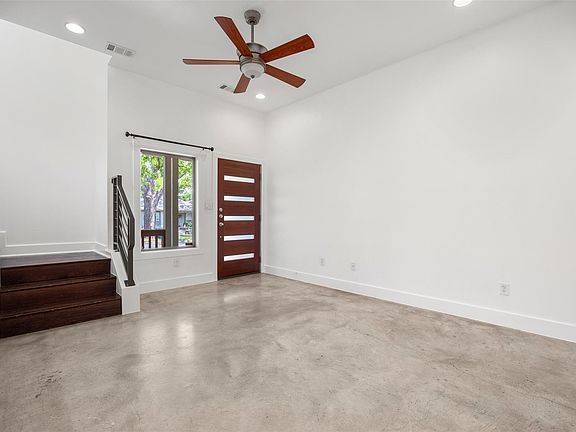 This 3-bedroom, 2.5-bath home is tucked beneath a canopy of mature trees in the Holly District just blocks from Lady Bird Lake, the hike & bike trail, and some of East Austins most loved restaurants and coffee shops.The open-concept main floor features sealed concrete flooring, large windows, and a bright, functional layout. The kitchen includes solid surface countertops, stainless steel appliances, and a spacious center island that flows into the living and dining areas perfect for everyday living and entertaining. The primary suite is located on the main level, offering a private retreat with an en suite bath and walk-in closet.Upstairs, two additional bedrooms share a full bath and feature wood flooring and plenty of natural light. The private backyard includes an open patio area surrounded by large, old-growth trees, creating a shaded and peaceful outdoor space.Additional features include an attached one-car garage, a powder bath on the main floor, and thoughtful design throughout. A rare opportunity to own a move-in-ready home in one of Austins most dynamic and desirable neighborhoods.
