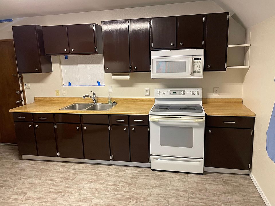 Beautifully remodeled 2 bedroom 1 bath upper floor unit in rear of 4-plex in nice neighborhood in north Everett near schools, parks and churches. New carpet and vinyl added October 22 and cabinets refaced September 22. Water, sewer, garbage and recycling covered with rent. Shared (digital) laundry so you can check on machines status on your phone. 6 month or 12 month lease terms available. We use "on-site" for credit and background checks/screening. Evictions/outstanding collections will eliminate potential candidates.