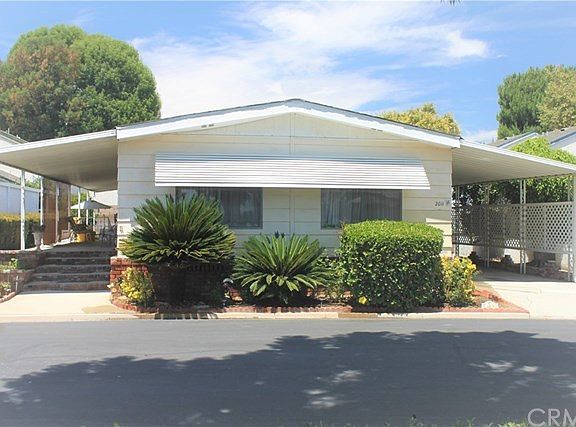 Located in Lakepark La Habra a quiet and safe Senior Park, 55 and over. This unit is landscaped, has a beautiful bricked raised porch, two nice private patios and garden area, carport can fit two cars, and comes with two storage sheds. Inside there is an oversized living room and formal dining area with a built-in buffet and beautiful wood laminate flooring. The kitchen is equipped with built-in stove top and hood, and built-in oven and broiler. It has a dishwasher, a roomy pantry and a large breakfast counter. The adjacent bright and light family room/den that has a nice built in desk and sliding doors to the outdoors. There is indoor laundry room with a utility closet and plenty of cabinets. Both bedrooms are very spacious with double closets and each has its own adjacent bathroom. The main bathroom has a large tub and a separate shower and double sinks for your comfort and convenience. The secondary bathroom is a roomy tub/shower combination. There is plenty of storage throughout the home. Lakepark La Habra offers a lake, seasonal fishing, pool, spa, recreational room, club house and many monthly activities for residents and guests. Several guest parking areas available. Please call for any questions.