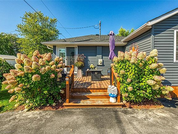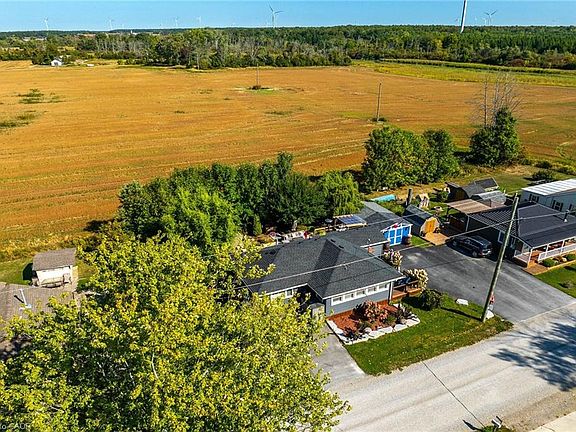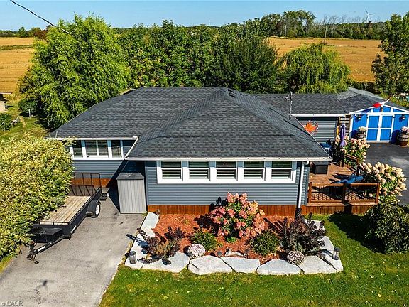 Looking for your own little piece of paradise?? You need this beautiful Lake Erie Home! Exquisitely decorated open concept main living area with vaulted tongue & groove ceiling, two bedrooms, plus recently renovated three piece bath with gorgeous glass shower, wonderful spacious laundry room and pantry closet plus utility room. The main room features many bright lake facing windows, large kitchen island, cozy propane fireplace and tasteful modern flooring. California shutters finish off the windows perfectly. There are five different lake views from the front room, and your view out of the back is trees and fields. The rear yard feels like a resort with lots of decking, pergola, gazebo, fully fenced yard and many mature trees. A garden shed, plus a workshop in the back yard - both have electricity and the workshop is insulated - would not take much to heat it. Large asphalt parking area - room for 5 to 7 cars, plus an extra parking space on the other side of the driveway. Your new Lake Erie home includes a deeded right of way directly across the road - 10 ft wide, so access the beautiful waterfront. Heated and cooled by efficient heat pump system, plus a propane fireplace for chilly nights. 2000 gallon cistern (plus an additional cistern for watering flowers) and 2000 gallon holding tank. Great potential for short term rental in this area as well.. take advantage of the beautiful beaches, and the small town of Dunnville close by. Stop procrastinating - live the dream at the Lake!