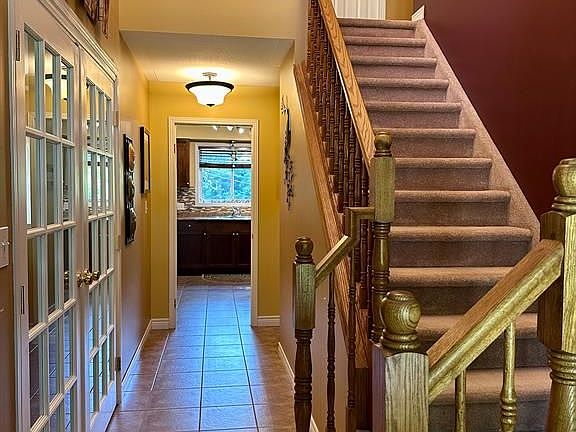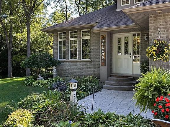 Discover affordable country living at its finest! Nestled on just under an acre, this charming property offers peace and privacy surrounded by mature trees and a winding creek. The 3-bedroom, 3-bath home features soaring 10' ceilings, a formal living/dining area, a cozy family room with a gas fireplace, and a maple kitchen with a breakfast nook overlooking the private backyard. Hardwood and ceramic flooring throughout add warmth and style. The primary suite includes a walk-in closet, jetted corner tub, and ceramic shower. The basement is framed, with a roughed-in bathroom and three egress windows, ready for future bedrooms or recreation space. Recent updates include roof (2022), electric heat pump and A/C (approx. 2 years), and gas furnace (approx. 2 years). The oversized driveway accommodates 8+ vehicles and includes a natural gas BBQ hookup. Minutes from Lake Erie, Port Rowan, and Tillsonburg. Furniture and décor may be available at additional cost-ask the listing agent for details!
