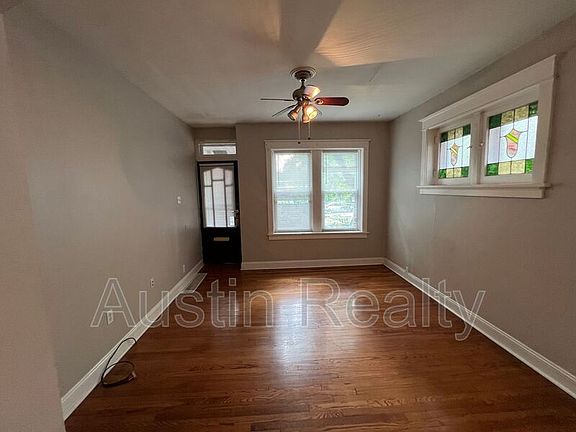 Neutral paintUpdated kitchenCharming stained-glass windowsNewer windowsCeiling fansHardwood flooringFresh white trim