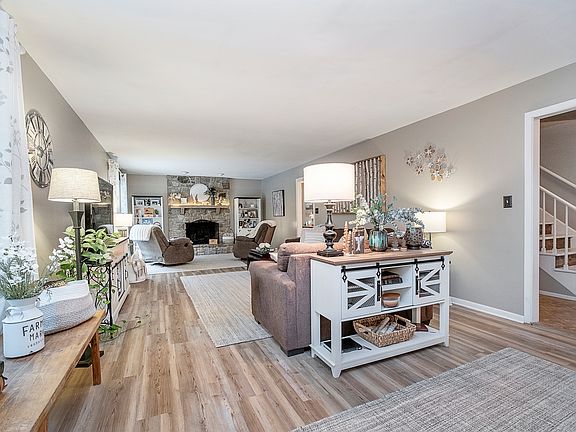 This remarkable home offers exceptional features that are sure to impress, including a beautiful kitchen, cheery sunroom, in-ground heated pool, and a finished basement, among other highlights. The home has been beautifully updated and is move-in ready. As you step inside, you're welcomed by a spacious foyer that sets the perfect tone for the rest of the home: elegance and comfort. The spacious home has newly installed Luxury Vinyl Plank flooring throughout. The large Great Room is anchored by a cozy gas-log fireplace. Custom barn doors separate the Great Room from the Formal Dining Room, which is currently used as an Office. Downstairs is a finished space with a second gas-log fireplace. This beautifully updates space can be used for a Family Room, game room, or exercise room, making it an ideal spot for relaxation and fun. The Basement also includes a large storage room with built-in shelving and three fully cedar closets for all your overflow needs. The Kitchen showcases elegant granite countertops, under cabinet lighting, custom tiled floors, a Casual Dining Area, and stainless-steel appliances that stay. Boasting four thoughtfully designed Bedrooms, the Primary Bedroom boasts an en-suite Bathroom, which provides privacy and convenience. The fourth Bedroom is on the Main Floor, offering a private space for guests or can be a quiet Home Office. A large Laundry Room provides beautiful cabinetry and closets, as well as ample storage space. This home includes a front-loading washer and dryer for your convenience. The oversized two-car Garage is equipped with built-in shelving for optimal organization and consists of a storage table for tools and workspace. The exterior of the home is just as impressive as the interior: Your Private Retreat awaits in the Backyard, with a new cedar fence that includes three gates, a well-maintained in-ground pool with an automatic pool cover, a charming pergola, and slate tile flooring, all nestled against a serene, wooded backdrop.