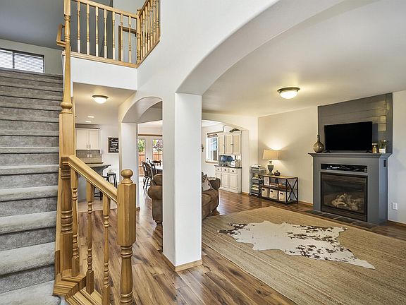 This great 4-bedroom 3-bathroom home has an open floor plan with a primary bedroom suite on the main floor, solid granite counters with tile backsplash in the kitchen with a large island and breakfast counter space that opens to a spacious living room complete with gas fireplace. Nicely landscaped back yard features a great wooden deck with pergola and concrete area perfect for entertaining or sitting around a fire pit before enjoying the hot tub. The upstairs bedrooms are separated by a bonus space perfect for watching television or gaming without interrupting the activities downstairs. The three-car garage has been partially converted to a man cave but can easily be converted back if parking inside is a higher priority. Come see all this home has to offer.
