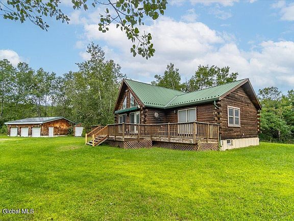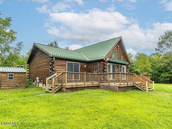 If you are looking for privacy near Cossayuna Lake-THIS IS IT!! This Log Home sits on over 7 acres of Privacy. The vaulted great room has wood floors, a wood stove for cold nights and a loft area perfect for an office or extra sleeping space. 1st floor primary suite with walk in closet and full bathroom with a shower & soaking tub. Plenty of front deck space for outdoor entertaining. The rear deck is the perfect place for grilling. The basement has a game room, Bar area, workshop and storage rooms. The 3 car detached garage can all your cars/toys out of the weather. Come take a look and make this your new home!