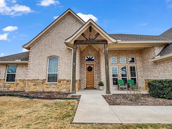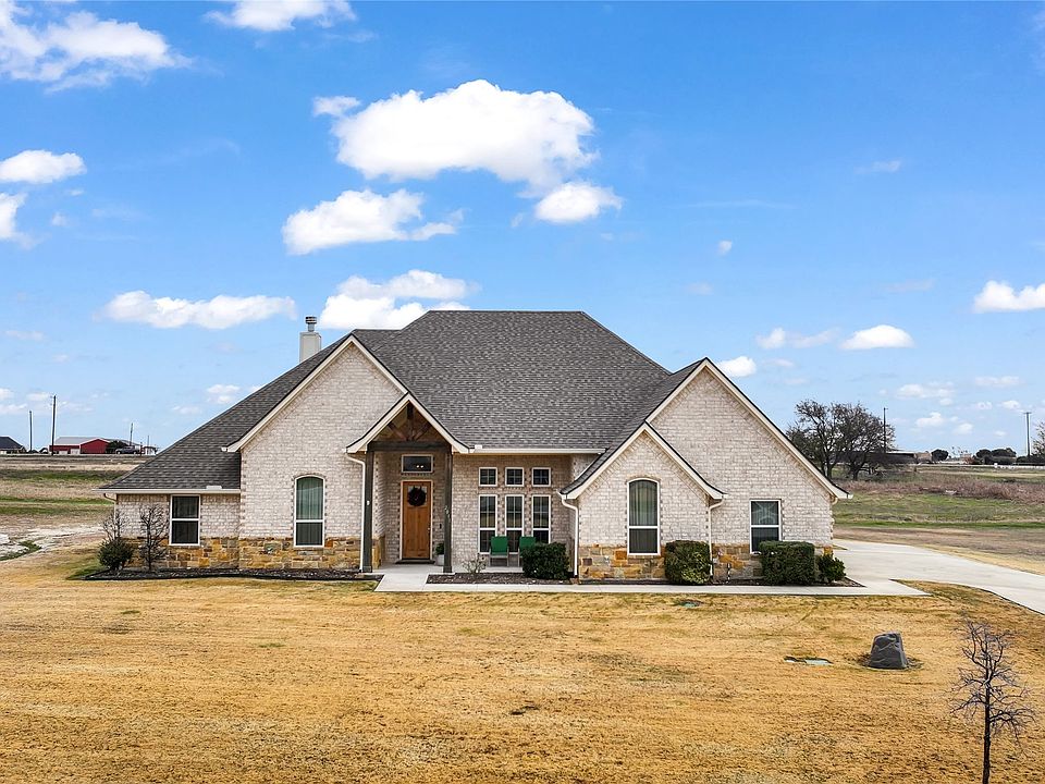 Some homes just feel right the moment you step inside—this is one of them. Designed for space, flexibility & effortless living, this impeccably maintained home rests on 2 beautiful acres in highly sought-after Peaster ISD. Offering 2,744 thoughtfully designed square feet, this gently lived-in home shows with the freshness & polish of new construction, delivering a truly move-in-ready experience. The spacious living room is anchored by a striking wood-burning fireplace with a floor-to-ceiling stone hearth & floating mantle. The open-concept kitchen overlooks the living area & features quartz countertops, a large island with bar seating, shaker-style cabinetry, a stunning natural rustic brick backsplash & a generous walk-in pantry. A large private office with French doors provides an ideal work-from-home setup. The oversized bonus room offers flexibility to function as a fifth bedroom with full closet, secondary office, gym or playroom. Three additional bedrooms are generously sized with walk-in closets & cozy, impeccably maintained carpet. The primary suite is a true retreat with tray ceiling, spa-inspired ensuite bath featuring separate vanities, soaking tub, luxury shower, private water closet & a walk-in closet that flows seamlessly into the laundry room. Elevated touches include tile flooring in main living areas, crown molding, stunning fixtures & Santa Fe–style wall texture, creating a refined luxury-meets-rustic contemporary aesthetic. Exterior features add peace of mind with full gutters, buried AT&T fiber, aerobic septic, private well with water softener & filtration system & a newer roof, making this home truly turn-key. With no HOA, the usable acreage adjacent to the home offers ample room to add a pool, shop, barn, guest suite or space for horses & chickens. Just 10 minutes from downtown Weatherford & 15 minutes from I-20, this property perfectly blends peaceful country living with modern convenience. A home that fits where you are—and where you’re headed