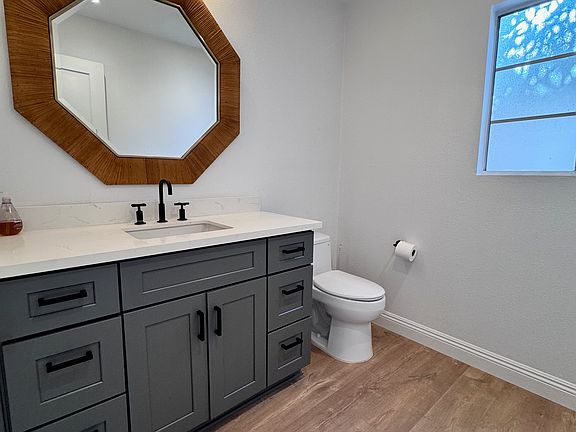 This beautifully updated home hosts 3 bedrooms/3 baths plus office/bonus room with a mix of wood floors and carpet. As you enter this home you will immediately be drawn the two story living room ceiling and a room filled with light. You also will find the family room located just off the entry way with a cozy fireplace. There is a dedicated dining room with plenty of windows and sliding door access to the outdoor space. The kitchen was overhauled and comes equipped with quartz counters, new cabinets, stainless steel appliances, new lighting, breakfast bar, separate eating area and a big pantry. The eat in kitchen also provides access to the oversized outdoor space. The second floor hosts the living quarters with two identical bedrooms with vaulted ceilings, ceiling fans, mirrored closets and full bathroom. You're in luck, the laundry area is also located on the second floor. The primary suite has its own wing. There is an attached bonus room/office with a through and through fireplace and a super spacious bedroom suite with vaulted ceilings, ceiling fan, fireplace, deck and 2 large closets. The primary bathroom will undoubtedly capture your eye with its double sinks, double skylights, standalone shower and soaking tub with built in cabinetry and separate restroom. Rounding out this rare Floorplan is the outdoor space that is larger than the norm with a concrete finish, garden beds, lime tree and L shaped feature allowing multiple areas to entertain and play. There is a 2 car garage and guest space.