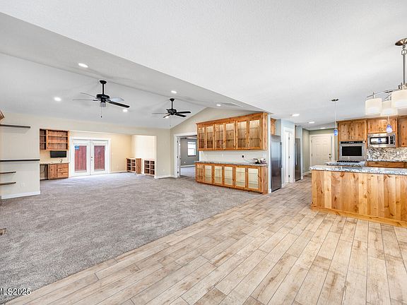 BEAUTIFUL 5 BEDROOM 3 BATH HOME ON 1 ACRE!! This 2700+ sqft home was just recently fully remodeled and is like brand new! It has a huge living area, with a vaulted living room and attached den/office space with many custom built-ins. Split floor plan with 4 off bedrooms all good sized, hallway with built-in for lots of storage and 2 guest baths, both with tile floors, one with a shower tub combo and another with a shower unit. Large primary bedroom with more built-ins when you enter, tile bath with tub, double sinks and walk-in closet. Large kitchen with island and plenty of storage and counter space, granite tops, gas cook top, double ovens, two dishwashers, separate freezer and refrigerator. Massive pantry with additional built-in for more storage, laundry area has cabinets, fenced in deck out back and covered deck out front. Attached finished 2 car garage plus additional 576 sqft detached garage for additional storage and much more!!