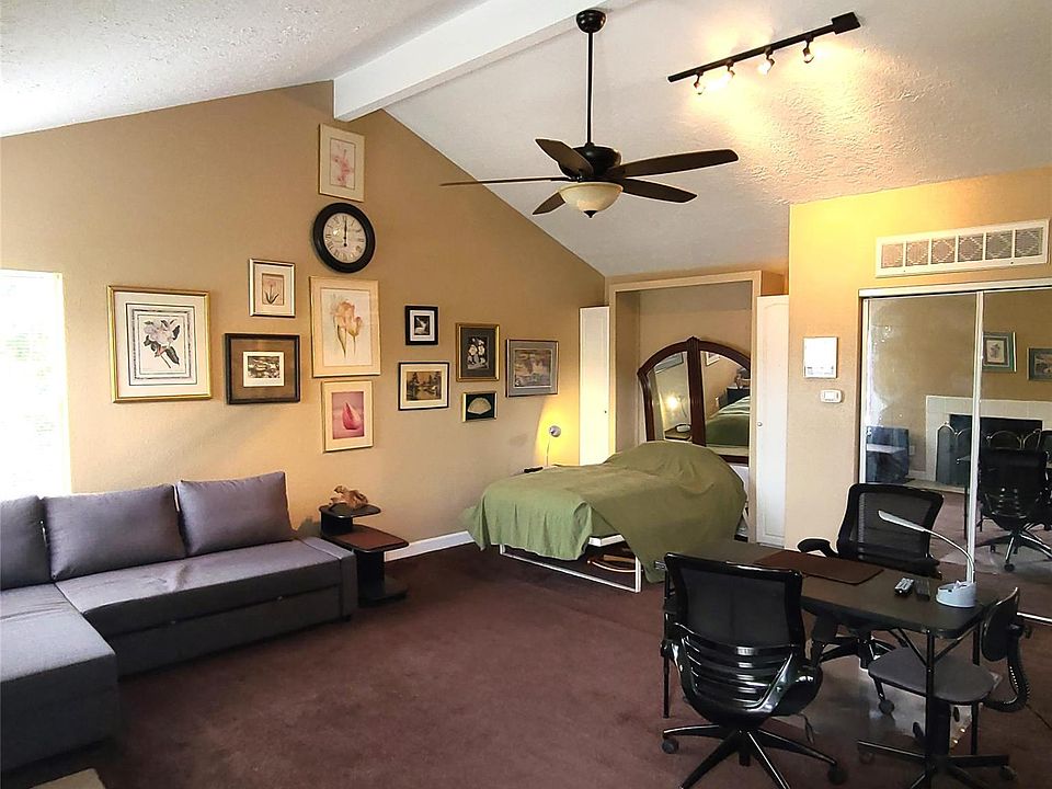 This Second Floor Spacious Corner Studio Condo is located in a Quiet, Gated Community is in the heart of Revitalizing Spring Branch. This Open Floorplan features a Wood-Burning Fireplace, Murphy Bed with Additional Storage and a High Vaulted Ceiling with Open Green Space Views from both the Unit and the Balcony with Large Magnolia Tree out front. The Kitchen includes a Refrigerator, New Never Used Microwave, New Never Used Electric Range, Dishwasher. In the bathroom you will find an Included Stacked Washer and Dryer, Newer Bidet toilet and a Newer Shower /Tub Combo with Sliding Glass Shower Doors. You have Assigned Covered Parking with plenty of additional parking and a Short Walk to Both of the Community Pools. The Very Low Monthly HOA fee and Low Taxes makes this a great opportunity for first time buyers or investors looking for a Low-Maintenance investment in a Prime Location. This is just one of three condos in the community and adjacent community being offered by the same seller.