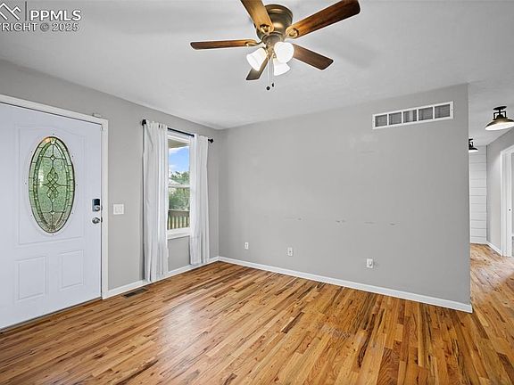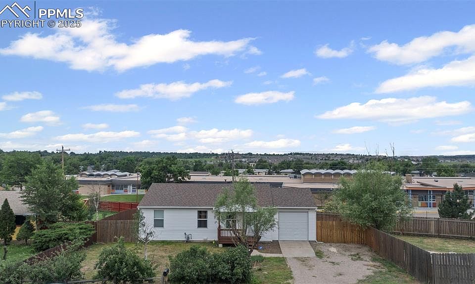 Rare Southeast Colorado Springs Rancher on Nearly a quarter Acre! Discover this beautifully maintained 3-bedroom, 1-bathroom ranch-style home with a 1-car garage, built in 2006 and nestled on a spacious corner lot. The inviting open-concept layout features hardwood flooring in the living room, hallway, and primary bedroom, with brand new carpet in the secondary bedrooms for a fresh, updated feel. The kitchen boasts newer countertops, freshly painted white cabinets, and oil-rubbed bronze hardware, adding a modern touch to a cozy space. Enjoy peace of mind with a brand-new roof and relax in the oversized, fully fenced backyard offering mountain views — perfect for entertaining, gardening, or pets. Located close to schools, parks, and medical facilities, this newer home is a rare find in an established neighborhood. Don’t miss your chance to call it yours!