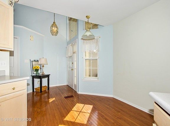 Original owner hates to leave. Town Home on premium lot with deck backs to mature trees & pond w/ fountain. Large kitchen has breakfast nook. 2 master BRs; 1 up and 1 down. Whirlpool tub. Marble fireplace w/ mantel in LR, vaulted ceilings, skylight in loft. Lots of windows throughout. Hardwood Floors Through-Out! Laundry on first floor. 2 car attached garage. ALL appliances stay! Close to HS. Dist. #204 Schools!