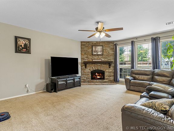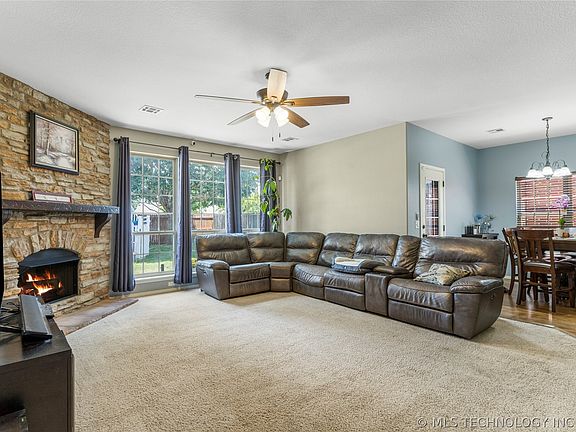Discover the perfect blend of space and comfort in this exceptional 5-bedroom, 2.5-bathroom home located in the highly desirable Jenks school district. Boasting a spacious open concept kitchen and family room, complete with granite countertops and stainless steel appliances, this home is an entertainer's delight. Enjoy the convenience of a dedicated in-home office, half-bath, utility room, and large master bedroom and bath on the main floor. Upstairs, you'll find four additional bedrooms, spacious closets, and a full bath, along with a generously sized game room, providing ample space for relaxation and play. Outside, the backyard oasis awaits with a covered patio and an above-ground pool nestled among mature trees, offering privacy and tranquility. The three-car garage has insulated doors and a large 20,000 Btu mini split a/c with heat, so you can work on projects in comfort, year-round. The garage size and features allow for ample storage and parking. This home truly has it all. Don't miss your chance to own this gem in one of the most coveted neighborhoods!