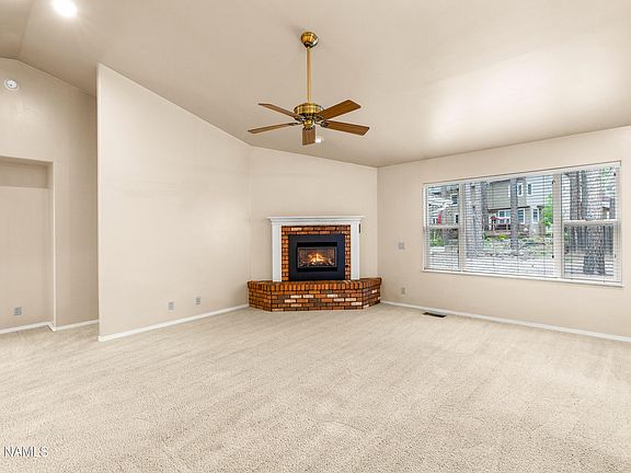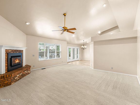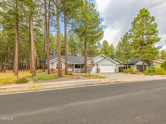 The perfect blend of comfortable single-level living, modern amenities, and access to outdoor recreation, all in the friendly, established neighborhood - Boulder Pointe. This property delivers both lifestyle and practicality, located on a quiet cul-de-sac. A bright, open layout with a cozy gas fireplace in the living room, and an eat-in kitchen breakfast bar. The exterior offers curb appeal galore, featuring mature trees, raised garden beds, and a covered patio, ideal for summer BBQs. Relax in the luxurious primary suite with a jetted spa tub, walk-in closet, and tiled shower, a spa-like retreat at home. Only minutes to downtown Flagstaff grocery stores, restaurants, shops, and other everyday essentials.   And don't forget the large 3-car attached garage with ample storage space.