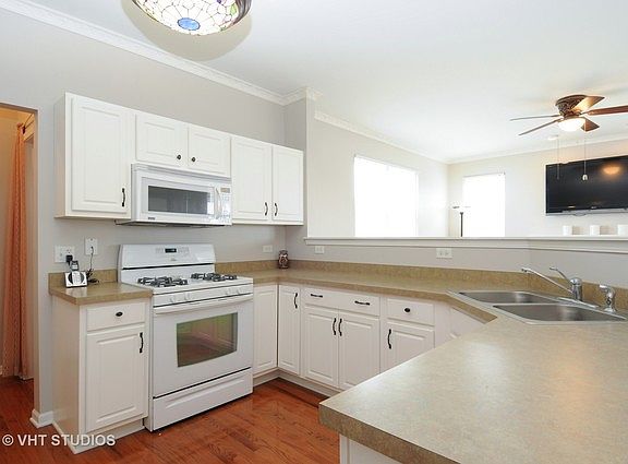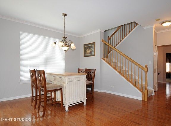 Enjoy your morning beverage on the front porch. Beautiful hardwood floors as you enter the home into the formal living room and dining room. 1st floor den/office. Kitchen is open to the family room and large eating area and has white cabinets, hardwood floors and crown molding. Large eating area also has hardwood floors and sliding door to the covered patio. Family room has a wood burning fireplace and lots of windows with great views of the open back yard. Master suite with private bath and walk-in closet. Loft could easily be turned into 4th bedroom if needed. White trim and 6 panel white doors throughout. Several rooms freshly painted. Most rooms have ceiling fans. 1st floor laundry room has convenient access to back yard. Full unfinished basement. Brick paver driveway which wraps around to the back yard and has a patio. Separate concrete patio with retractable awning overlooking the lush private back yard. All new windows and patio door. Waubonsie lake nearby for many activities.