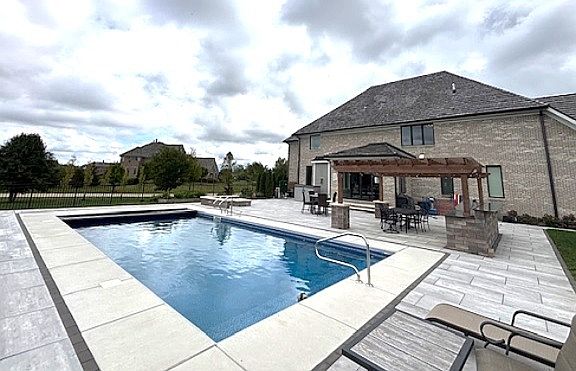 Welcome to this extraordinary all-brick residence set on a private 1-acre lot in sought-after Long Meadow Farms. With 5 bedrooms and 4 full baths, including a main-floor guest suite, this home blends elegance and comfort. A dramatic curved staircase greets you in the grand foyer, leading to light-filled living spaces. The chef's kitchen-equipped with a Sub-Zero refrigerator, Wolf range, and expansive quartz island-sets the stage for memorable gatherings. Retreat to the primary suite with dual walk-in closets, spa-inspired bath, and private infrared sauna. Step outside to your resort-style backyard: a heated 36x18 pool, outdoor kitchen, dining area, and gas firepit, all designed for year-round entertaining. The 9-ft basement with heated floors offers endless possibilities, while the heated 4-car garage provides space for every passion. A rare opportunity to own a true lifestyle home in one of the area's most prestigious neighborhoods and school system.