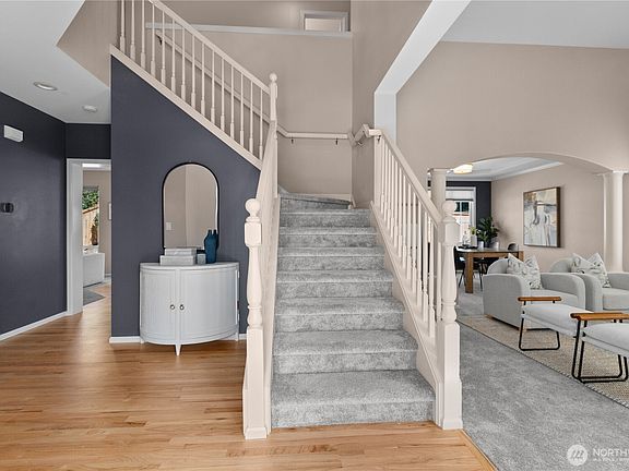 Discover this stunning 4BD/2.5BA home in Bothell's desirable Redhawk neighborhood! Situated on a sunny 6,970 SF corner lot in sought-after Northshore School District, this 2,156 SF home boasts vaulted ceilings, elegant millwork, and formal dining room. The spacious kitchen offers new appliances, abundant storage and flows into the bright living areas. Luxurious primary suite features 5-piece bath with soaking tub. Private landscaped yard ideal for entertaining. Recent upgrades include: new concrete siding + roof (2015), AC system, updated kitchen countertops, double EV chargers, and refinished hardwood floors. This well-designed home combines classic elegance with modern updates in a prime location. Rare opportunity in coveted neighborhood!