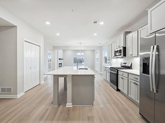 Nestled in the charming city of Corcoran, Minnesota, this 2-story new construction townhome home offers a perfect blend of modern comfort and timeless elegance. As you step inside, you are welcomed by an inviting open floorplan that seamlessly connects the living spaces. The kitchen is a focal point of the home, featuring a spacious island that provides ample counter space for meal prep and entertaining. Whether you are enjoying a quiet family dinner or hosting a gathering with friends, this kitchen is sure to inspire your inner chef. This residence offers 2 bedrooms and 2.5 bathrooms, including an en-suite owner’s bathroom complete with a dual-sink vanity for added convenience and luxury. The owner's suite sits on the first floor, while the second bedroom is located upstairs—both spaces providing comfortable retreats for relaxation and rest.
