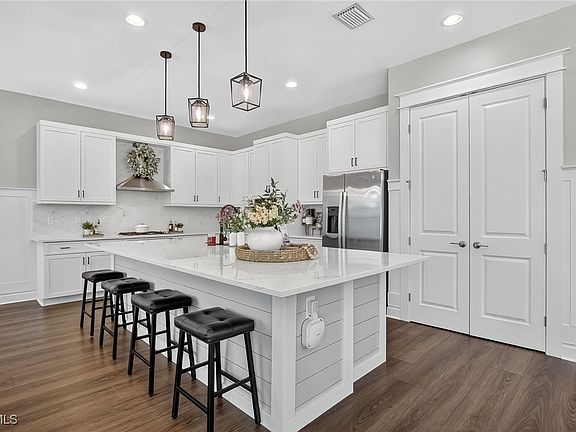 Your DREAM HOME awaits you! Discover this exquisite Denali, situated within the prestigious, gated RiverCreek community. This luxury home offers an unmatched blend of custom features and modern design. The backyard is a private oasis, featuring a custom electric heated pool and spa, complete with custom lighting and elegant marble pavers. Inside, the gourmet kitchen is a chef's dream, equipped with double ovens, a massive quartz island, and high-end cabinetry. The pantry and primary bedroom boast custom closets, offering ample storage and organization. The spacious living area is enhanced by a custom built-in entertainment center and fireplace, perfect for both relaxing and entertaining. Throughout the home, custom lighting adds a sophisticated touch, while the finished garage floor and high-end flooring—luxury vinyl plank throughout the main level and engineered wood on the stairs and second floor—demonstrate attention to detail at every turn. Custom Wainscoting throughout the first floor sets this home apart. Located in an amenity-rich community, RiverCreek offers 24/7 security and resort-style amenities, including walking trails, a clubhouse, and a fitness center, ensuring comfort and convenience at every corner. This exceptional home truly offers the best of both luxury and lifestyle. Perfectly situated near everything you could possibly need! From events at Hertz Arena to shopping at Miromar Outlets, Publix, and Coconut Point Mall, plus easy access to beautiful beaches, RSW airport and FGCU campus. RiverCreek offers unbeatable convenience, with a wealth of options right at your doorstep! Don’t miss out—schedule your private tour today!