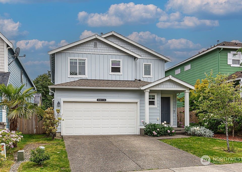 Light-filled 2-story home offers 1,413sf of well-designed space. Freshly painted in modern tones w/newer carpet & laminate flooring, it features 3 beds, 2.25 baths, & a welcoming entry w/soaring ceilings leading to a family rm, kitchen, & dining area. Kitchen boasts elegant cabinetry, tile cntrtps, & SS applncs. Primary bdrm has an en suite bath & walk-in closet. Add’l amenities include a laundry rm w/shelving, an AC system, pre-wiring for security & internet, freshly painted exterior, 2-car garage w/Tesla charger, & an upper-level office nook. Spacious fncd bkyard w/ a wood deck, fruit trees, flowers, garden beds, & a patio. Close to a community park w/sports facilities & Panther Lake, w/ EZ access to frwys, hospital, & Southcenter Mall.