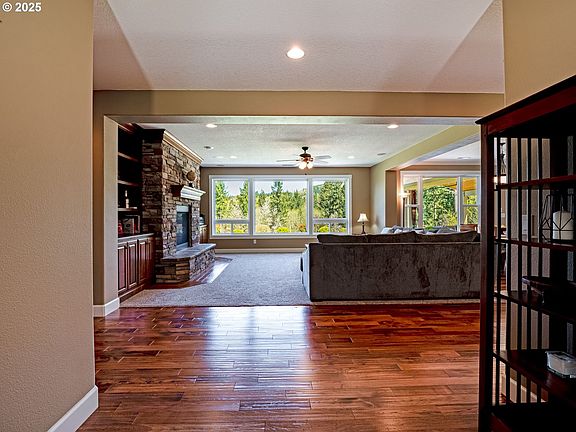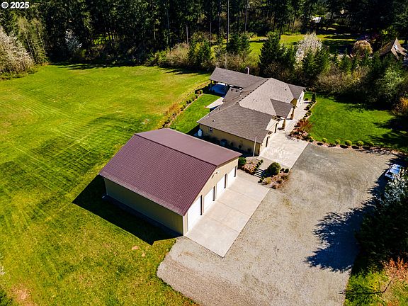 Come Discover the Epitome of Pacific Northwest living at it's Finest!! This custom-built Single-Level residence, constructed in 2015, offers 2,809 square feet of thoughtfully designed living space on a sprawling 4.89-acre lot. The home features three spacious bedrooms and 2.5 bathrooms, providing ample space for family and guests. The heart of the home is the Gourmet Kitchen, Equipped with Top-of-the-line SS Appliances, Granite Counter Tops, Custom Cabinetry, Oversized Pantry, Propane Gas Cooktop and a large Center Island—perfect for Culinary Enthusiasts and Entertaining. Adjacent to the kitchen, the open-concept living and Dining Areas feature Large Windows that Flood the space with Natural Light and offer stunning views of the Surrounding Landscape. Step outside to your Oversized Covered Patio Complete with Built in Fireplace, Cedar Awning, Canned Lighting and Plenty of Power to Electrify All your Entertaining Needs. Discover the Expansive Grounds, Providing Endless Possibilities for Outdoor Activities, Gardening, or Simply Enjoying the Tranquility of Nature and Views that are Incomparable. The Oversize SHOP features both a 30 amp and 50 amp for welding or RV Hookup, concrete flooring as well as 50x20 concrete apron, utility sink & Exhaust Fan. 400 AMP Service Panel and Recently added Mancave perfect for Entertaining or Relaxing. The property's location in Battle Ground offers a perfect blend of rural serenity and convenient access to local amenities, parks, schools, and recreational opportunities.? Experience the perfect balance of comfort, privacy, and modern living in this exceptional Battle Ground property.