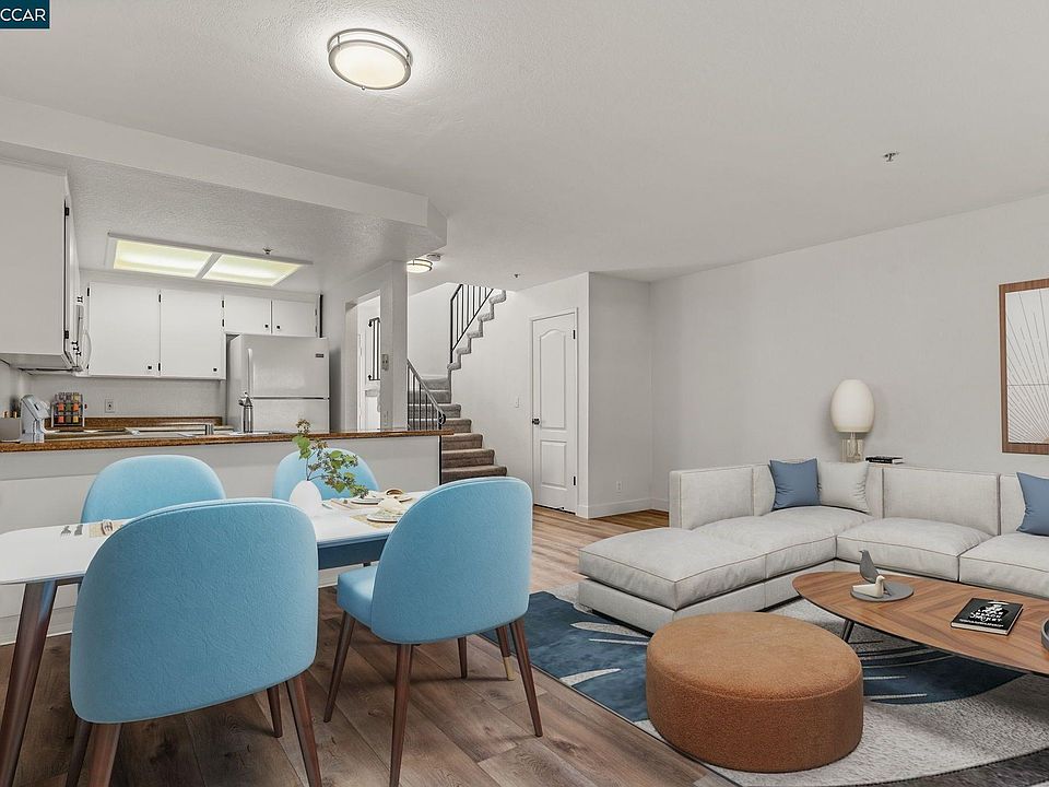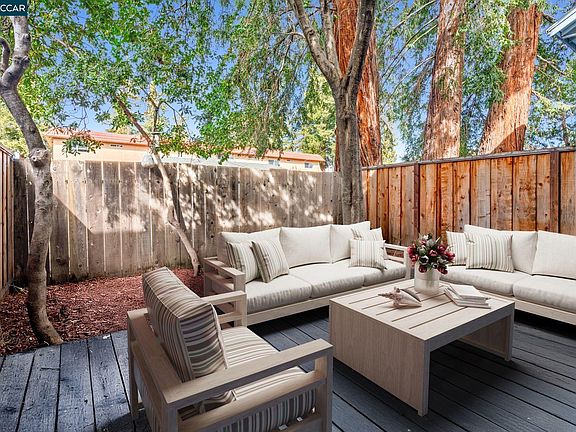 Great location close to popular downtown Castro Valley! Just a short walk to the Castro Village Shopping Center & a short walk to BART. Tucked away off Redwood Road, this town home-style condo (2-story) boasts an open floor plan. As you enter there is a half bath to the right of the entry, open area living room flanked by a kitchen & patio with decking. Upstairs you will discover two bedrooms (each with a bathroom "en-suite"), a landing area with washer & dryer tucked away in the laundry closet. Recent updates include flooring, interior paint, updated bathrooms, interior lighting, closet doors, freshly painted kitchen cabinets, hardware, ceiling fans and more! Two dedicated parking spots (one covered and not covered), guest parking as well. HOA dues include water and garbage. Close to shops, restaurants, commute access and high rated Castro Valley schools! This one won't last long!