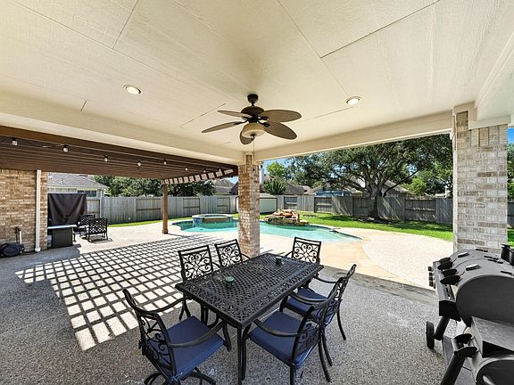 Beautifully maintained 2-story home on a spacious corner lot. The showstopper is the backyard, your own private retreat with a sparkling heated pool, relaxing spa, waterfall feature, storage shed, and plenty of open green space for entertaining, pets, or play. It’s the kind of outdoor setup that’s ready for everything from summer cookouts to quiet evenings under the stars. Inside, the home offers a thoughtful floor plan with all the right spaces. A private study with French doors is ideal for working from home, while the formal dining connects easily to the kitchen, making entertaining a breeze. The large island kitchen features a gas cooktop, walk-in pantry, and generous counter space, opening to a bright den lined with windows overlooking the pool and backyard. The primary suite is tucked away on the first floor with soaring ceilings and peaceful backyard views. Upstairs, a spacious game room and three large secondary bedrooms provide plenty of room for family and guests.