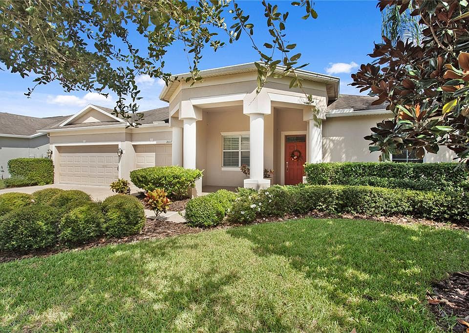 Welcome home to this stunning resort style pool home which is located in the gorgeous gated community of Live Oak Preserve. Nestled in beautiful lush landscape this exquisite home has a lot of space for you, and your family. This oasis is a great space for entertaining, and gathering of family and friends. Enter through front door to the center of the home into the spacious living and dining room that looks out to the pool area and joins the space with glass sliding doors. This concept flows into the kitchen with abundance of cabinet space, stainless steel appliances, beautiful eat-in dining area that overlooks the pool and into the entertainment room. The patio has an outside seating area with TV and Bar designed with Italian Cappadocia stone including a beautiful resort style heated jetted Pool with waterfalls, lighting and in-pool seating including table tops for your drinks. There are 4 bedrooms, 3 bathrooms. The split floor plan creates privacy for the extra large main bedroom with custom made walk in closet, large on suite which features a soaking tub, walk in shower and his and hers vanities and access to the outside sitting and pool area. The opposite side of the house has 3 bedrooms and 2 bathrooms. There is a multi-million dollar clubhouse with a resort-style pool, splash pool, fully equipped fitness center, splash zone, lap pool, playground, and multiple courts for tennis, pickleball and volleyball. Live Oak is in an excellent location with TOP RATED SCHOOLS. Close proximity to restaurants, parks, golf courses, shopping and outlet mall, with an easy access to downtown Tampa, via I-75 and I-275. Short distance to hospitals, shopping, restaurants, University of South Florida and Busch Gardens, 30 minutes to the Tampa Airport. Live Oak is also ideally situated for the hurricane season and being inland, the community did not have any major damage during hurricane season. Don't miss this incredible opportunity in Live Oak Preserve. Schedule your private tour and envision your new lifestyle.