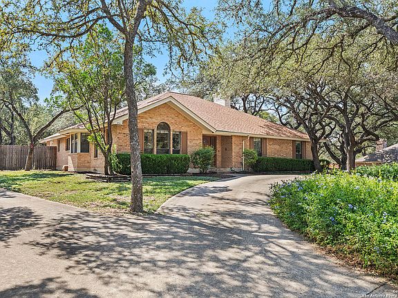 Enjoy country-style living with an easy reach to shopping and all the city conveniences offered by San Antonio and New Braunfels. The community is filled with large, tree-studded lots that provide a calm and relaxed environment. The home is very well maintained with an inviting oversized living room accented by a wood-burning fireplace. There is a wet-bar area for entertaining situated between the living room, enclosed back porch and the primary lounge area. There is a private office/4th bedroom with French doors and built-ins adjacent to the living area. The custom book cases add a library feel to the space but also remains entirely appropriate as an add'l bedroom. A spacious primary bath offers double vanities, jetted tub, shower and large walk-in closet. A large sitting area completes the primary suite. Outside has a covered patio, a NEWLY resurfaced in-ground pool for you to enjoy in a truly park-like setting. The roof was installed in 2022. The oversized detached garage has large storage areas plus a partially floored attic. The home also has a high-end water softener system in place. This property has a pre-paid home warranty that will be transferred to the new owner upon closing and funding THAT IS IN PLACE UNTIL OCTOBER 2029!!!!! NO WORRIES!