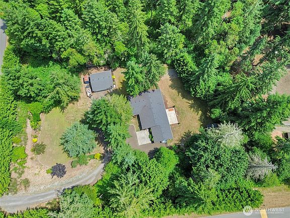 Tucked among the evergreens, this peaceful 2.5-acre PNW retreat offers space, privacy, and charm. Vaulted ceilings, open-concept living, 4 beds, 2 baths, bonus room, and a spacious primary suite—all under a newer roof replaced in 2020. Stay cool with A/C, warm with a pellet stove, cook with style in the stainless kitchen. Carpets and paint are BRAND new! Outside: fenced yard, sprinkler system, chicken coop, and a huge detached garage. Quiet community with trail access to Joemma Beach State Park—true Northwest living!