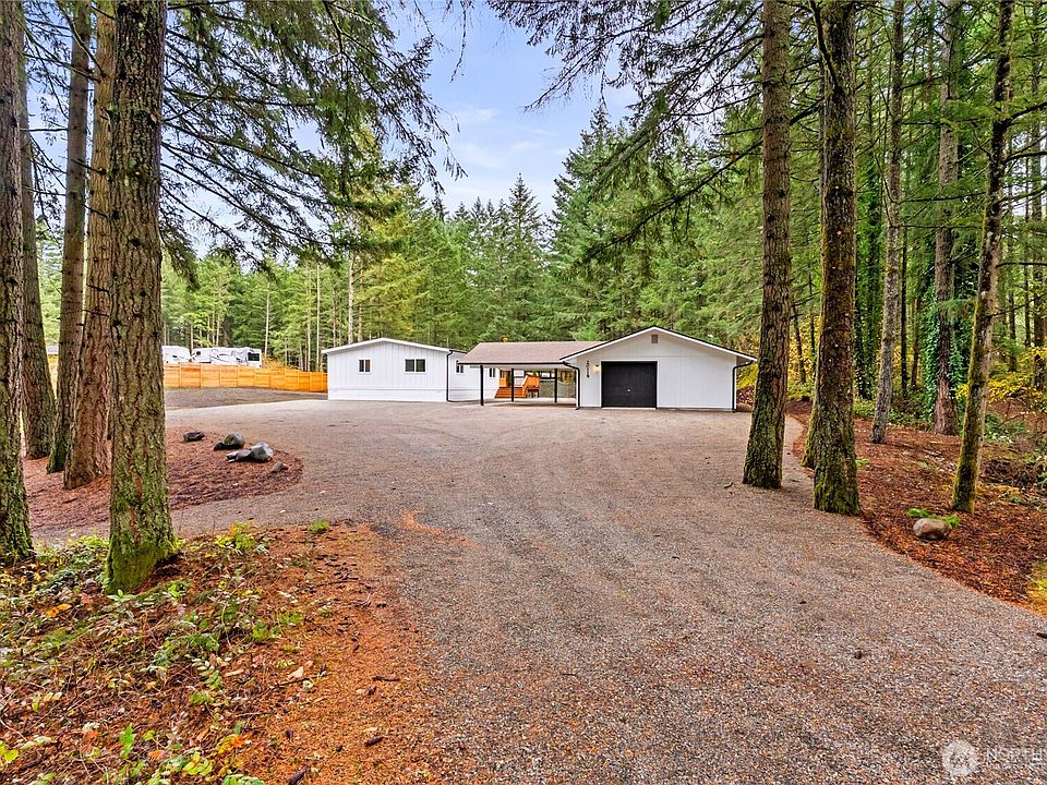 Must-see 1,840 sq ft home on a beautiful,fully usable 1.25-acre flat lot.This stunning property offers 3 bedrooms,2 baths, & vaulted ceilings that create an open,airy feel.Enjoy a brand-new kitchen w/modern finishes,new flooring throughout,&a spacious living room featuring an accent wall w/an electric fireplace.The primary suite offers a luxurious bathroom w/a custom tile shower & freestanding soaking tub.Step outside to a new oversized 10x30 deck,perfect for relaxing or entertaining. The property also includes an 865 sq ft oversized garage and a 24x27 carport,offering plenty of space for vehicles,RV or boat parking,and all your toys.A rare find that combines country living,comfort,and modern updates in one icredible package.Must See Today!