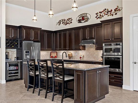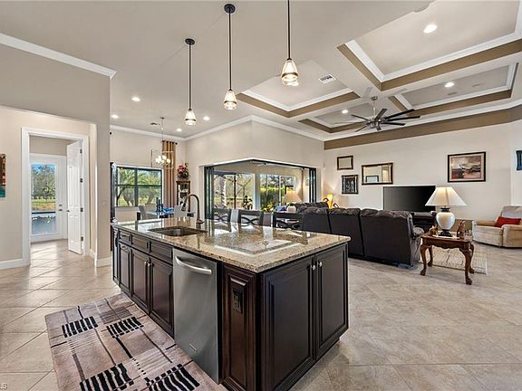 Come home to this open floor plan with soaring ceilings, an extended 3 car garage, 15x 30 extension on the lanai and impact glass throughout. Gourmet kitchen will not disappoint with a large center island, wine cooler, cooktop, wall oven, quiet close doors, pull out shelves, and pantry. Great room has coffered ceilings, zero corner pocket sliders to let the outside in, and large fan. Dining is open with large windows to let in plenty of light. Owners’ suite boasts tray ceiling, 2 large closets with closet systems, dual sinks, w/i shower, soaker tub, and linen closet. 3 guest bedrooms for your family or guests with Jack and Jill bathroom and the other is next to the pool bath. Enjoy all the outdoors on your huge lanai. A big portion is covered for shade and a portion is not to soak in the sunshine. Plenty of room for a pool or enjoy the community pool/spa. Other features: A/C 2021 High Eff Trane, den, can lights, surround sound in 3 areas, Ethernet and cable all rooms, double glass front doors, plumbed for outdoor kitchen, stack stone on front, large laundry room, crown throughout. Close to white sand beaches, shopping, dining, airport, golf and more.